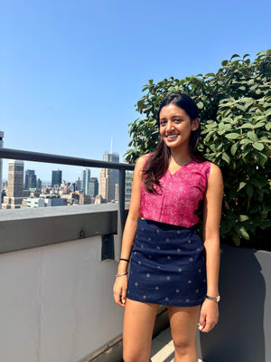 Versatile and striking, the Angan Mini Skirt can be styled with its matching bodice for a coordinated festive look, or paired separately with simple tops to let the handwoven silk stand out. Perfect for Diwali parties, weddings, and special occasions, it’s a statement piece rooted in heritage but made for today.