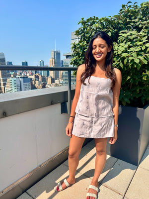 Featuring elegant monochromatic embroidery on both pieces, this set offers a chic, coordinated look that effortlessly blends fashion and comfort. Adjustable straps on the tank, and an elasticized waistband on the back of the skorts offers a perfect fit every time! Ideal for those seeking versatile, stylish outfits that can take you from day to night with ease.