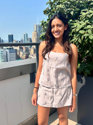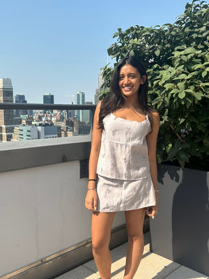 Elevate your style with our chic A-line skort, meticulously crafted for all-day comfort while effortlessly upping your fashion game! Featuring elegant monochromatic embroidery details, the skort seamlessly blends the ease of shorts with the polished look of a skirt. Perfect for those seeking the ideal combination of comfort and style, this piece is a must-have for any modern wardrobe.