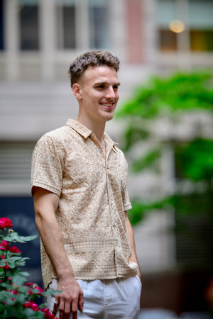 Made for long summer days and breezy nights, the Barmer shirt is crafted from 100% breathable cotton and finished with intricate tonal embroidery. Lightweight and versatile, it’s your go-to from poolside lounging to rooftop parties. Designed for comfort and ease, this shirt pairs heritage-inspired detailing with an effortless silhouette. Whether buttoned up or layered open, Barmer brings understated elegance to warm-weather dressing—crafted by hand, made to last.