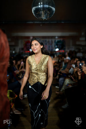 Saakshi wears Size S, (paired with here with our Gulabo pants) for a mixed metals moment!