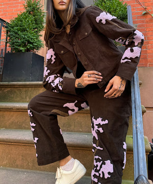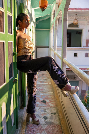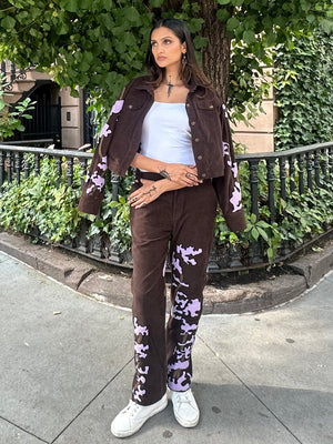 Discover the unparalleled craftsmanship of our signature high-waisted, straight-cut embroidered pants, meticulously adorned with over 80 hours of intricate lilac French knot embroidery. These handcrafted pants are a tribute to the skill and dedication of our karigars (artisans), blending traditional artistry with modern design. Perfect for adding sophistication to any look, these artisan-made pants highlight the beauty of detailed craftsmanship and are ideal for those seeking sustainable fashion and luxury embroidery.