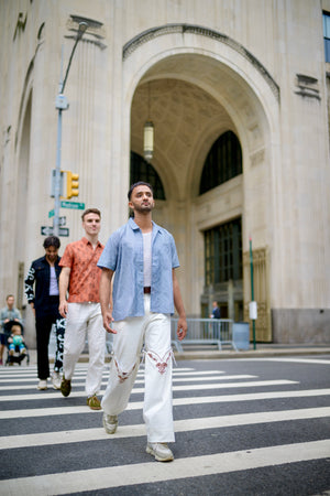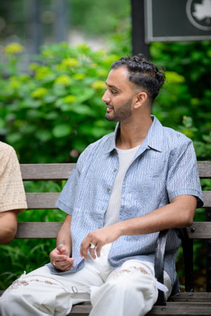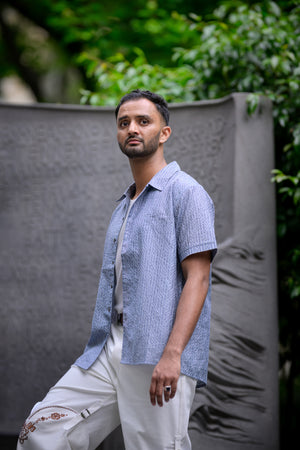 The Neelam Shirt, crafted from pale blue silk, is a hand-embroidered silk shirt for men. Featuring exquisite off-white hand embroidery that exudes refined elegance, it is inspired by the glint of blue sapphires in the low light. Whether buttoned up for a sleek finish or layered casually over a tee, Neelam brings a subtle sense of luxury to any wardrobe. Meticulously hand-embroidered by expert karigars, it’s a timeless nod to slow fashion and enduring style.